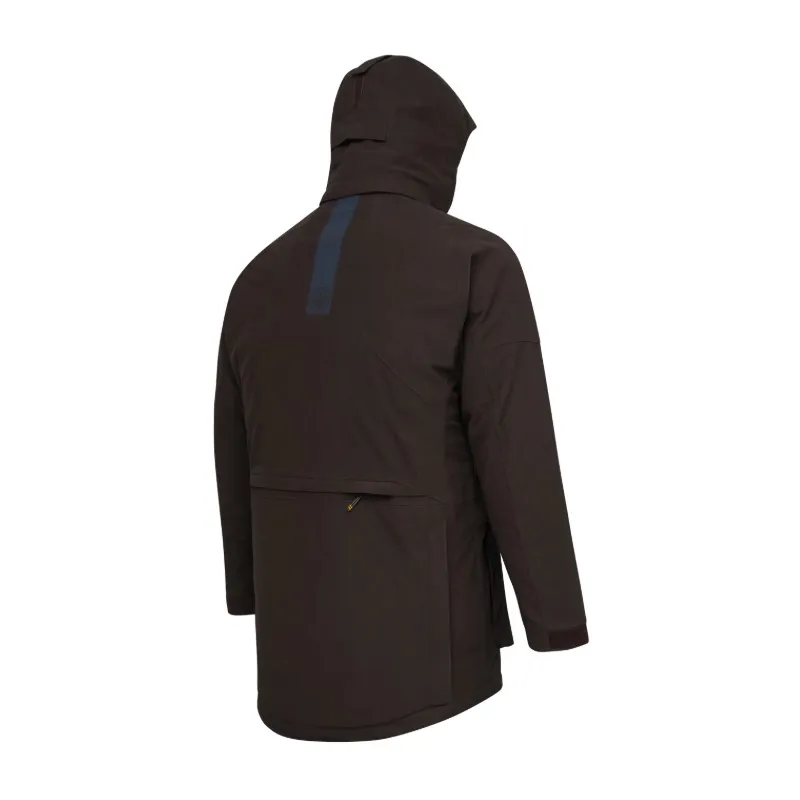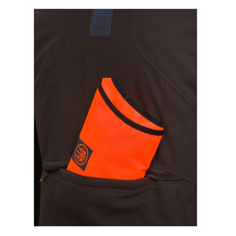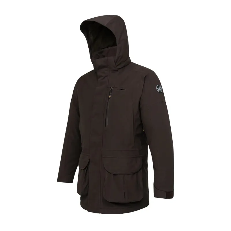 Beretta Waterproof Breathable (BWB) EVO membránnal. A grafén bélésnek köszönhetően ellenáll a hidegnek. A karok alatt szellőző cipzárak megakadályozzák a túlmelegedést és biztosítják a légáteresztő képességet. Kivehető mellény jól látható anyagból, EN20471 tanúsítvánnyal a hátsó zsebben. A külső anyag "Durable Water Repellent (DWR)" anyaggal van kezelve.