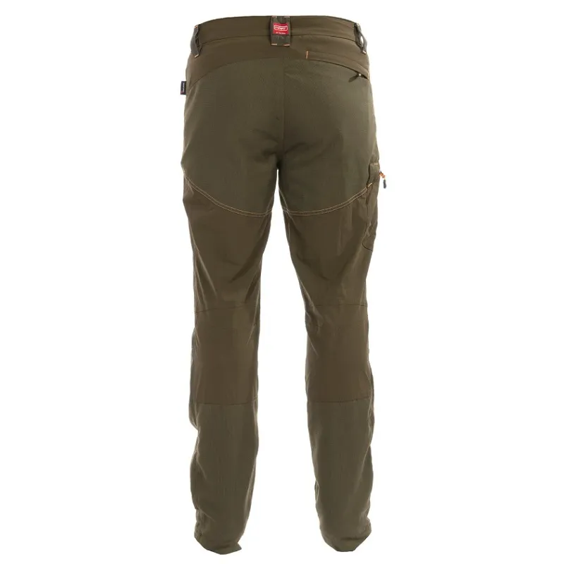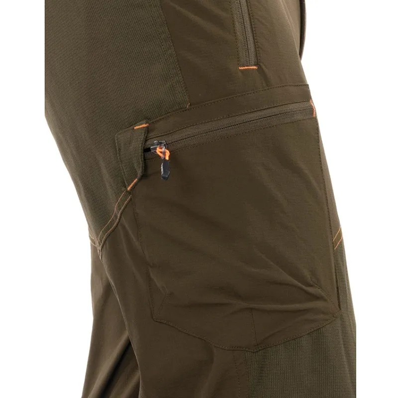 Megerősített panelek a jobb védelem és tartósság érdekében. Könnyű, lélegző, rugalmas és tartós szakadásálló anyag megerősített nejlon anyaggal a nadrág elején és hátulján. 4 zsebes kialakítás: 2 elülső cipzár, 1 oldalsó rakományzseb és 1 hátsó cipzáras zseb.