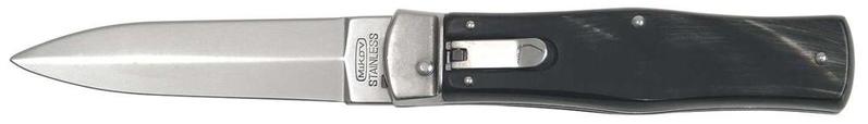 Automatikus kiugrókés a Mikovtól. Pengéje 420 acélból készült. A markolat bivaly agancsból készült. Egy kézzel is könnyen nyitható. A termék egy bőrtokkal járul.