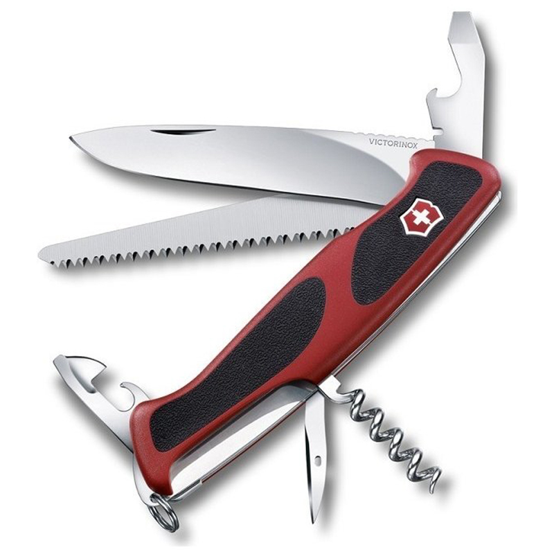 A Victorinox RangerGrip 55 piros / fekete zsebkés piros és fekete színben kapható, és kültéri multifunkcionális eszköz.