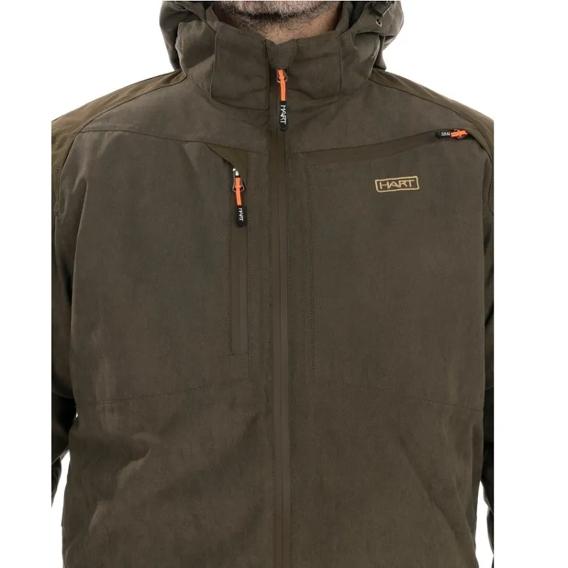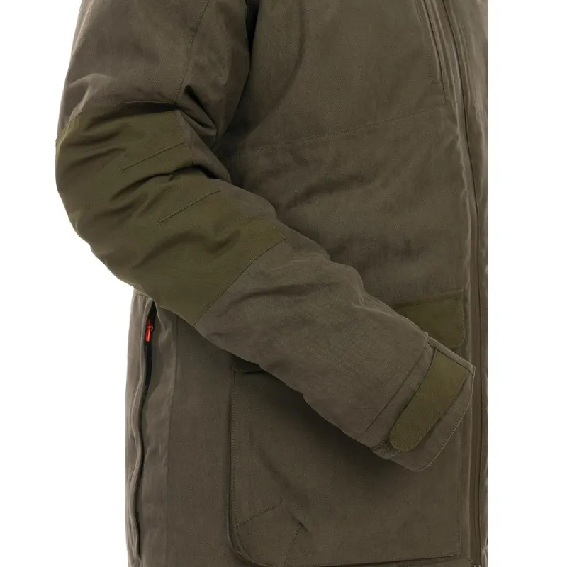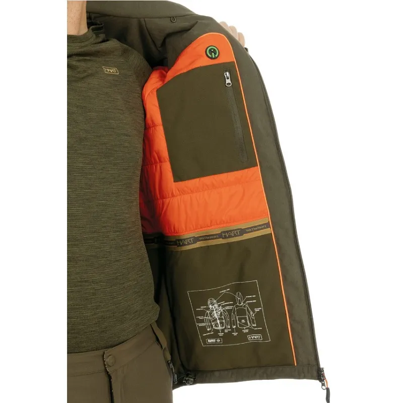 Zajmentes, de ellenálló mikro-toplon anyagból készült, 500D nejlon szövet megerősítésekkel a vállakon és a könyökökön. A belső HDI100 szigetelő párnázás magas hőszigetelést biztosít a hideg időben történő vadászatokhoz. A mellkason cipzáras zsebek a ruhadarab teljes elejét lefedik, így nagyobb tárolókapacitást biztosítanak, és elrejtik a rádió/GPS és mobiltelefon számára kialakított speciális tasakokat. Minden kiegészítője kéznél lesz, de védve a bokrokban való nem kívánt akadozástól. A rádió/GPS és mobiltelefon zsebek belsejében médiaport található fejhallgató számára (hurokkal a gallérban való vezetéshez). Az elülső alsó rakományzsebek még tovább növelik a tárolókapacitást. Hátsó cipzáras vadtáska. Cipzáras, levehető, állítható kapucni. Belső cipzáras mellkasi zseb és hálós zseb a kapucninak levételekor. Magas vízállóság (10000 mm) és légáteresztő képesség (10000 gr/m2).