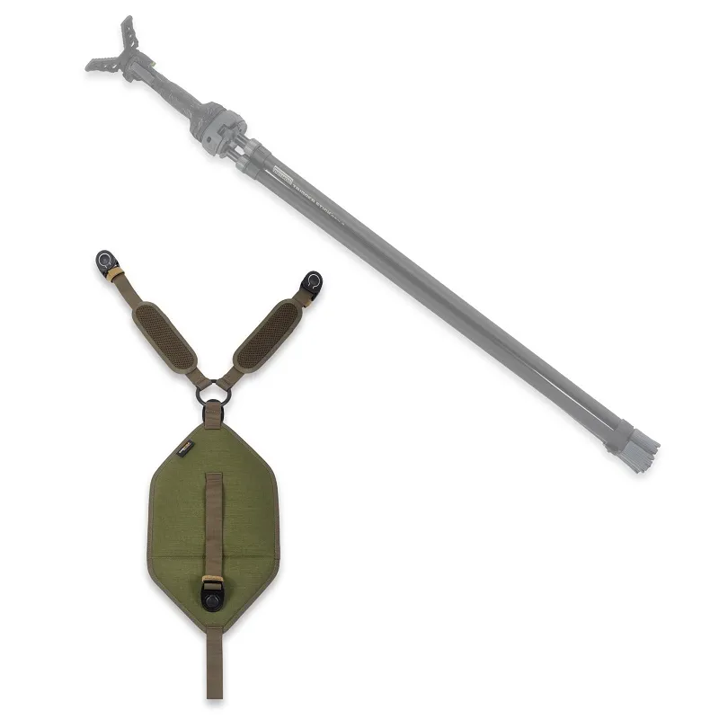 Az Integrator Modular Outdoor Vesttel kompatibilis állványtartó egy kritikus fontosságú kiegészítő, amelyet kifejezetten az Integrator Modular Outdoor Systemmel való használatra fejlesztettek ki. A sokoldalúságra és terepi teljesítményre tervezett tartó lehetővé teszi, hogy az állványt biztonságosan, kényelmesen és mindig kéznél legyen. Straszos, időjárásálló anyagokból készült, hibátlanul működik bármilyen kültéri környezetben – a sűrű erdőktől a nyílt terepig –, tartós tartósságot és kényelmet kínálva. A tartó két megerősített csatos pánt segítségével biztonságosan rögzül az Integrator Modular Outdoor Vesthez, biztosítva a stabil, mégis rugalmas csatlakozást, amely nem korlátozza a mozgást. Kábelkezes kialakításának köszönhetően mind a jobb-, mind a balkezes felhasználók számára kényelmes, az állványt természetes, intuitív helyzetben tartja a gyors beállítás és a zökkenőmentes működés érdekében a terepen. A mindössze 0,175 kg súlyú állványtartó az alacsony súlyt kivételes stabilitással ötvözi – tökéletes kiegészítője az Integrator felszerelésének, hogy fürge, hatékony és teljesen felszerelt maradjon a szabadban.