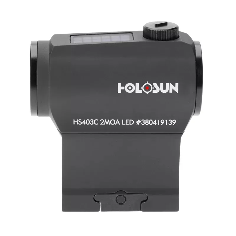 A Holosun HS403C kollimátor a legolcsóbb, jelenleg gyártásban lévő kollimátor napelemes technológiával. Automatikus pontbeállítást tartalmaz a fényviszonyoktól függően, amely kikapcsolható, valamint két állványt is tartalmaz a csomagban. Megfelelő segítő vadászati tevékenységekhez vagy sportlövészethez. Kompatibilis a FOXsight nagyítóval és más nagyító modulokkal. Parallaxismentes, korlátlan b
